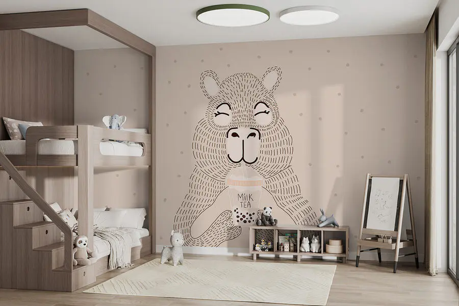 Ταπετσαρίες Γελοιογραφία μιας αρκούδας που κρατάει ένα τσάι φούσκας