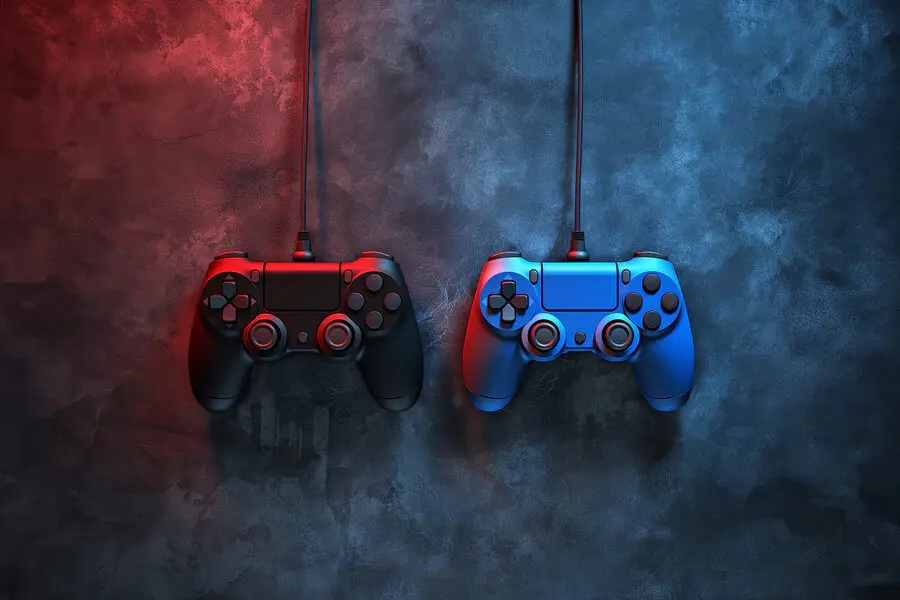 Ταπετσαρίες Ένα μπλε και ένα κόκκινο χειριστήριο βιντεοπαιχνιδιών