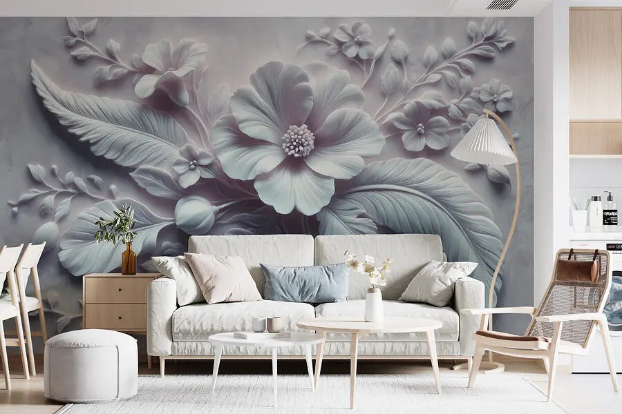 Ταπετσαρίες Λευκό λουλούδι και φύλλα