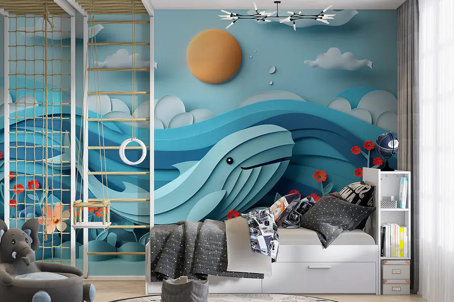 Ταπετσαρίες Χαρτί που κόβεται από μια φάλαινα στον ωκεανό