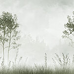Ταπετσαρίες Ομίχλη τοπίο με δέντρα και γρασίδι