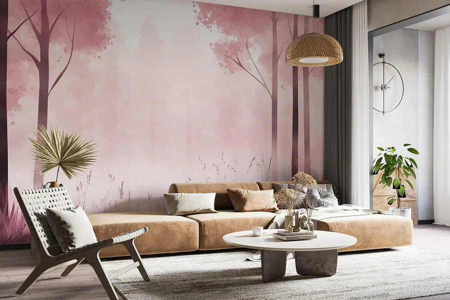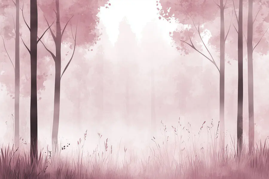 Ταπετσαρίες Ομιχλώδες δάσος με ροζ δέντρα