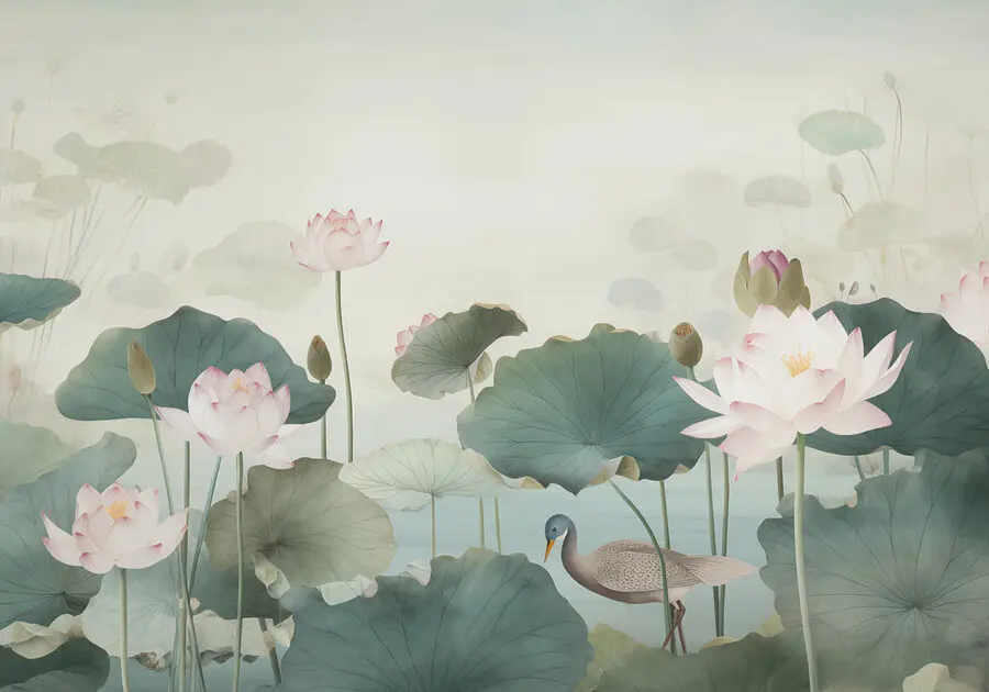 Ταπετσαρίες Πάπια σε λίμνη με λουλούδια λωτού
