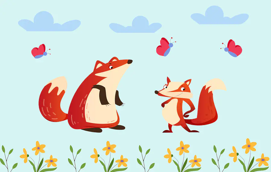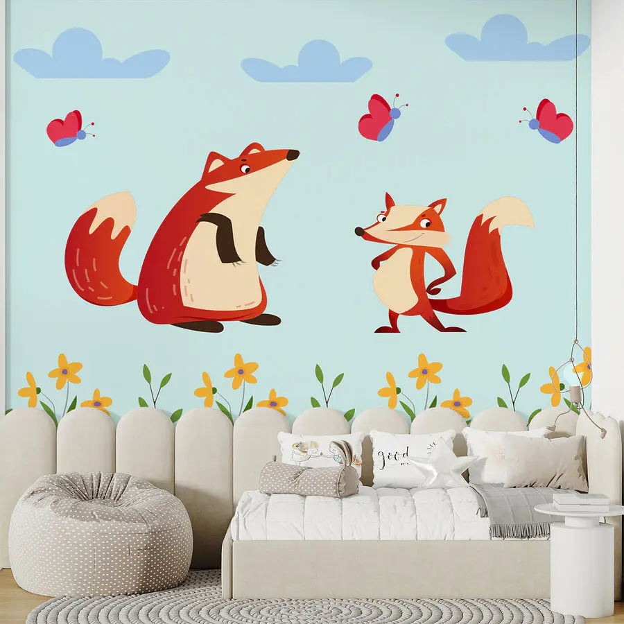 Ταπετσαρίες Σκιτσογραφία με αλεπούδες και μια πεταλούδα