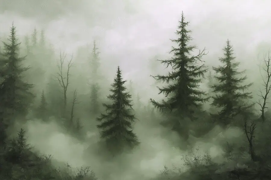 Ταπετσαρίες Ομιχλώδες δάσος με δέντρα