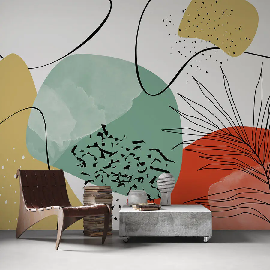 Ταπετσαρίες Πολύχρωμη τέχνη με μαύρα και κόκκινα και κίτρινα σχήματα