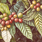 Ταπετσαρίες Καταπράσινα φύλλα με ζωηρές συστάδες καρπών