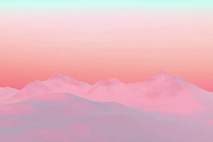 Ταπετσαρίες Ροζ και μπλε ουρανός πάνω από μια χιονισμένη οροσειρά