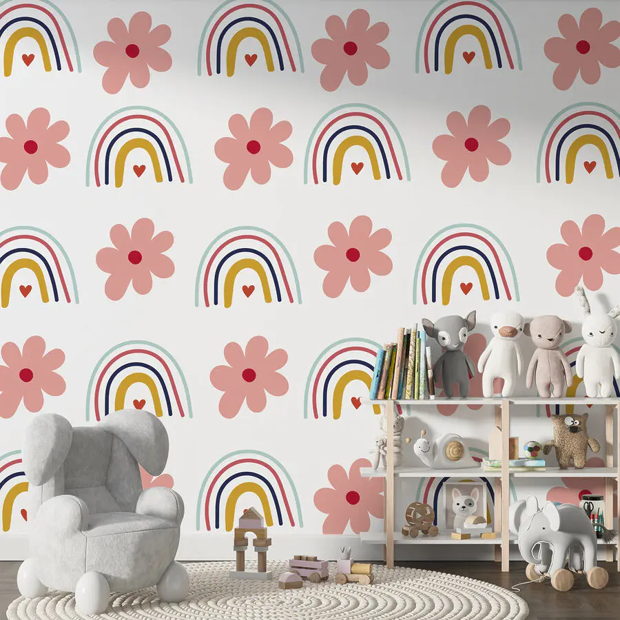 Ταπετσαρίες Μοτίβο από λουλούδια και ουράνια τόξα