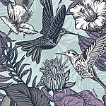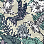 Ταπετσαρίες Πουλί που πετάει πάνω από λουλούδια