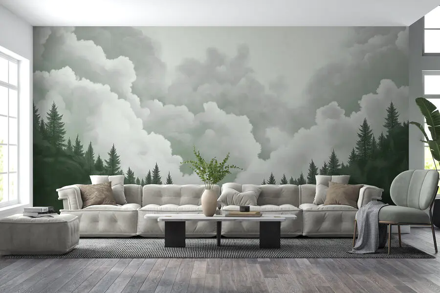 Ταπετσαρίες Ομάδα δέντρων και σύννεφα