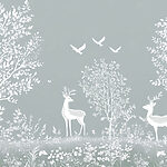 Ταπετσαρίες Λευκά ελάφια και πουλιά σε ένα δάσος