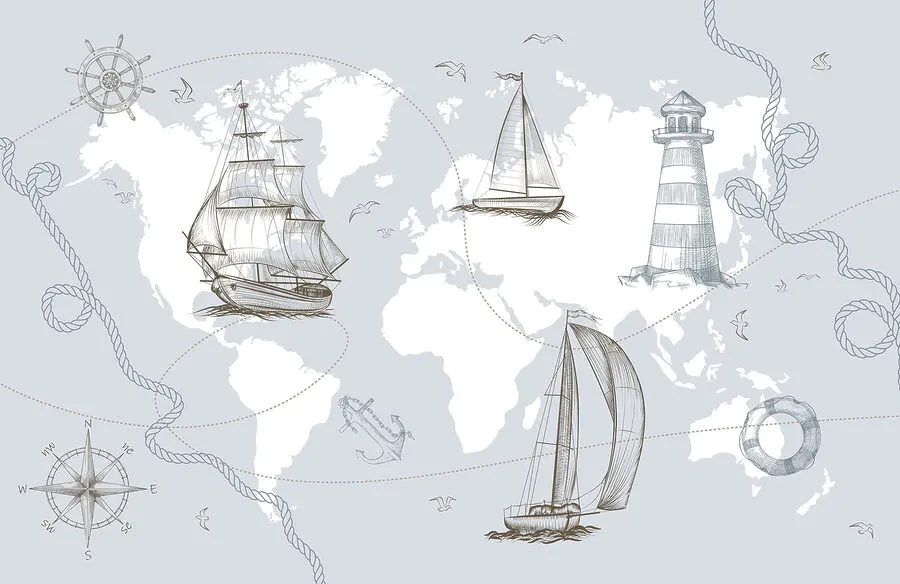 Ταπετσαρίες Χάρτης του κόσμου με διάφορα πλοία
