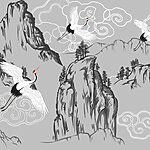 Ταπετσαρίες Ταπετσαρία με πουλιά που πετούν πάνω από τα βουνά