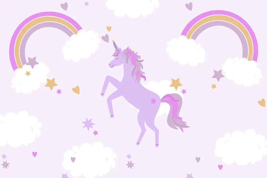 Ταπετσαρίες Μοβ μονόκερος με αστέρια και ουράνια τόξα