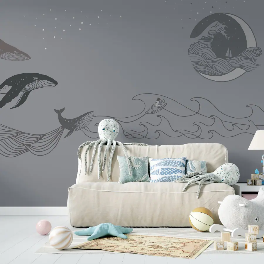 Ταπετσαρίες Σχέδιο φάλαινας σε γκρι φόντο
