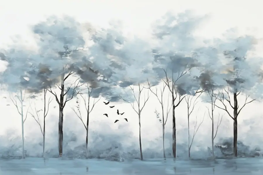 Ταπετσαρίες Ομάδα δέντρων με πουλιά που πετούν στον αέρα