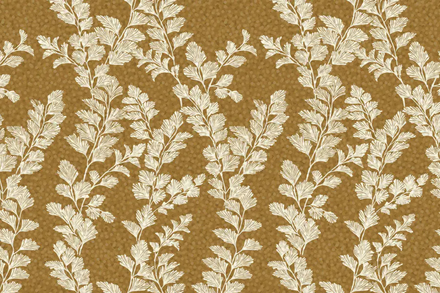 Ταπετσαρίες Μοτίβο από λευκά φύλλα σε καφέ φόντο