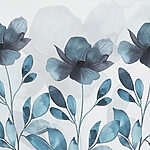 Ταπετσαρίες Μπλε λουλούδια και φύλλα