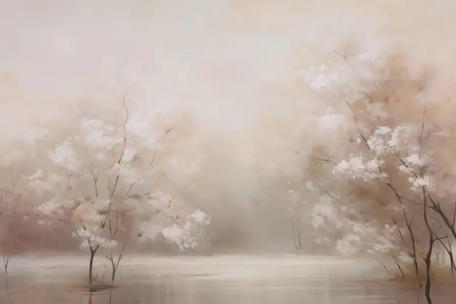Ταπετσαρίες Νερό με δέντρα και ομίχλη στον ουρανό