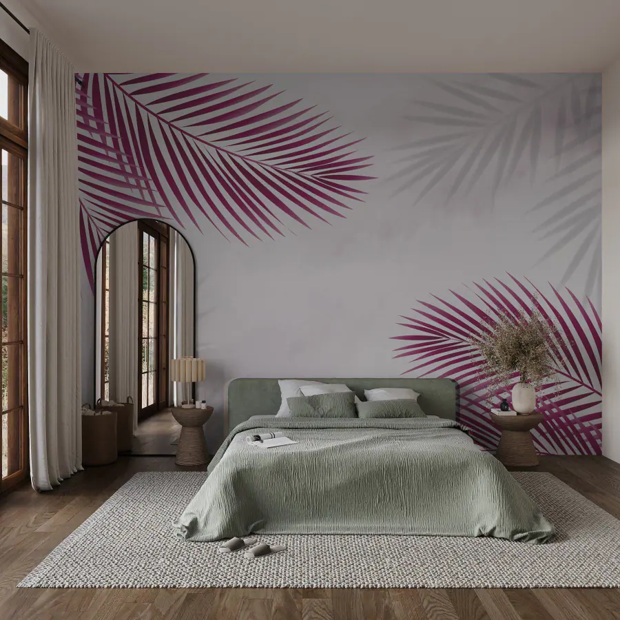Ταπετσαρίες Μωβ φύλλα σε λευκό φόντο
