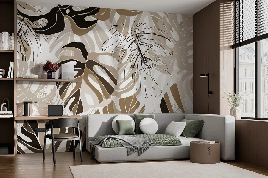 Ταπετσαρίες Μοτίβο φύλλων σε λευκό φόντο