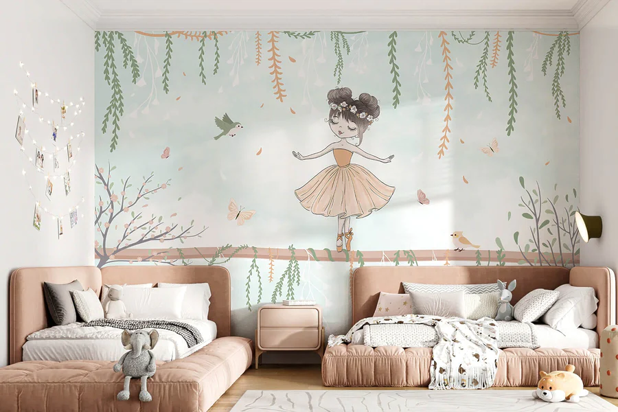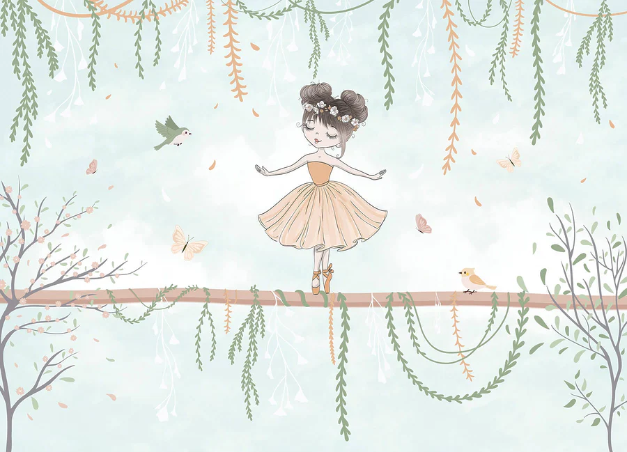 Ταπετσαρίες Γελοιογραφία ενός κοριτσιού σε ένα κλαδί