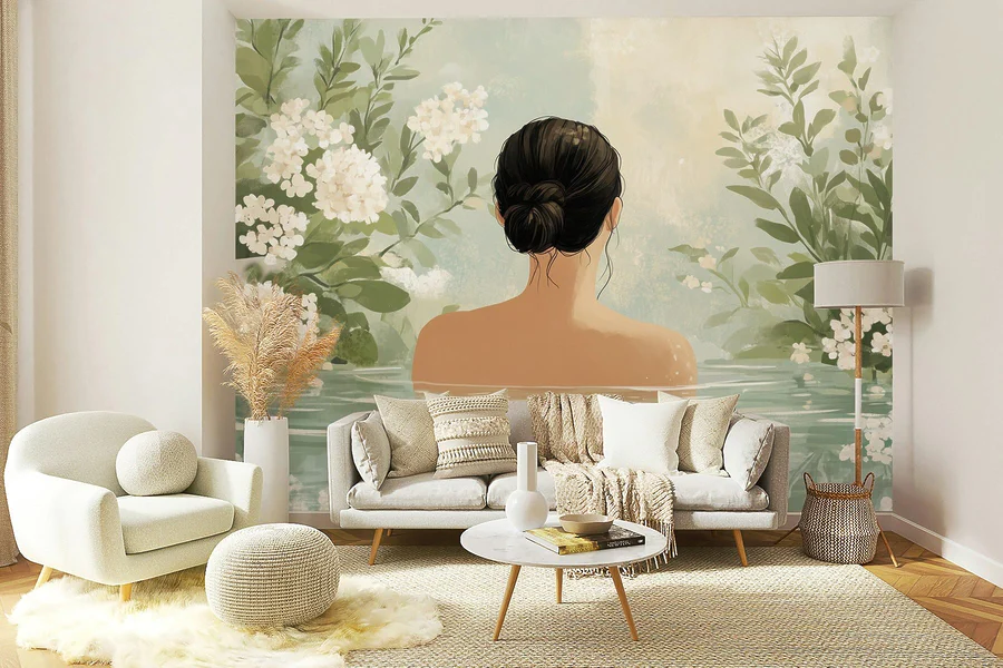 Ταπετσαρίες Γυναίκα στο νερό με λουλούδια