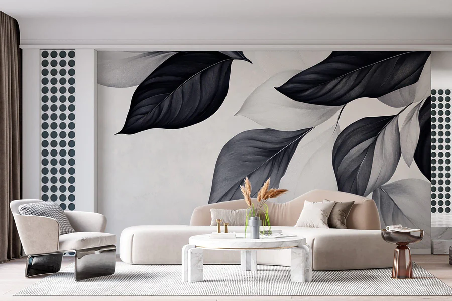 Ταπετσαρίες Κομψά φύλλα σε μονόχρωμους τόνους