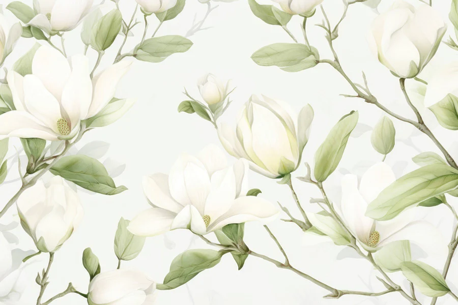 Ταπετσαρίες Λευκά λουλούδια με πράσινα φύλλα