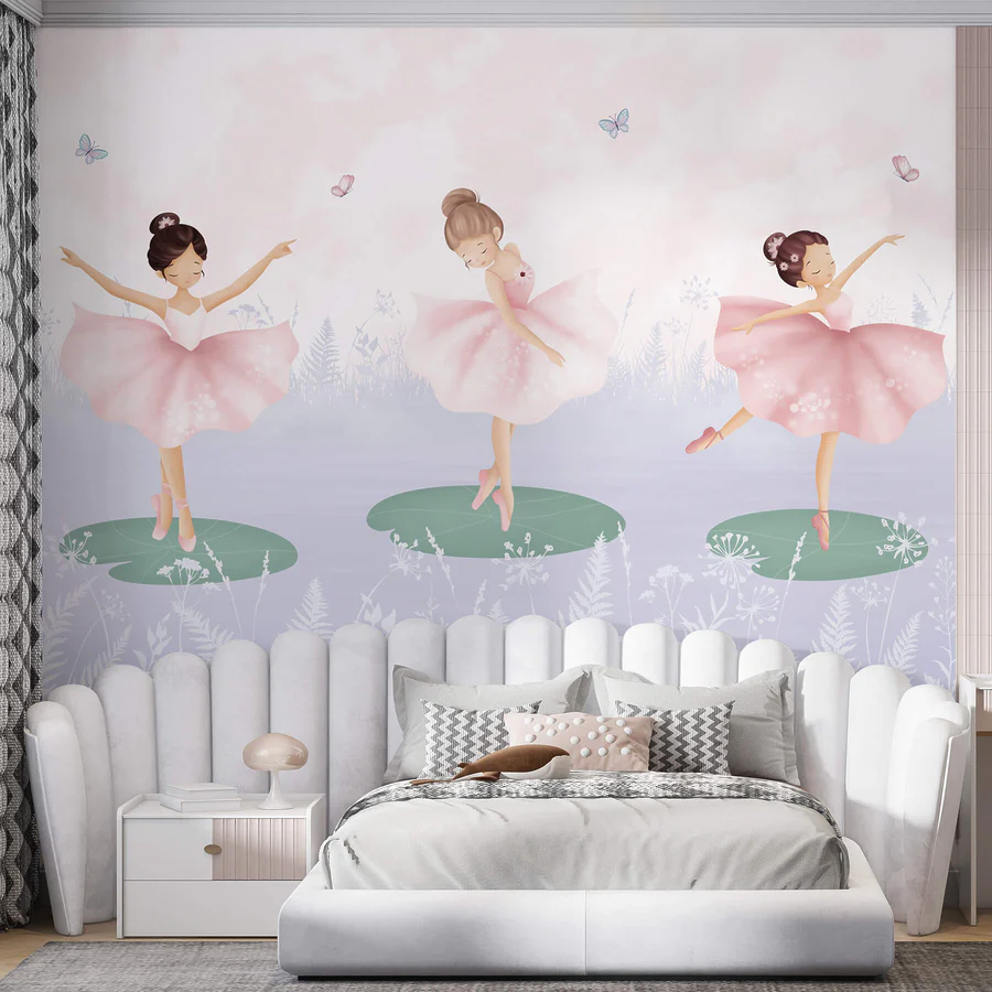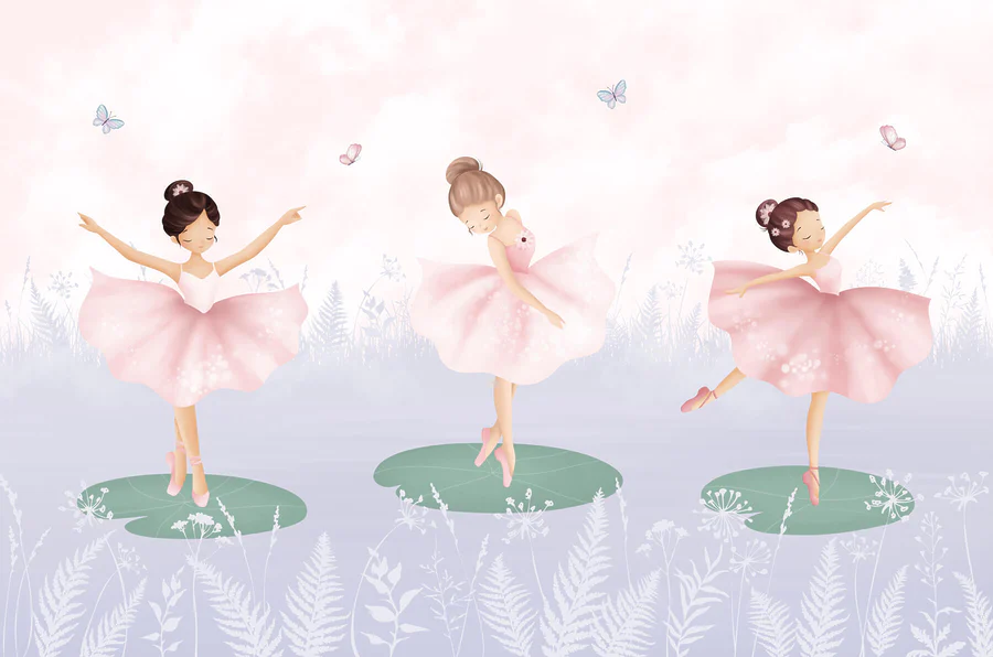 Ταπετσαρίες Ομάδα κοριτσιών με φούστες tutu που χορεύουν σε κρινάκια