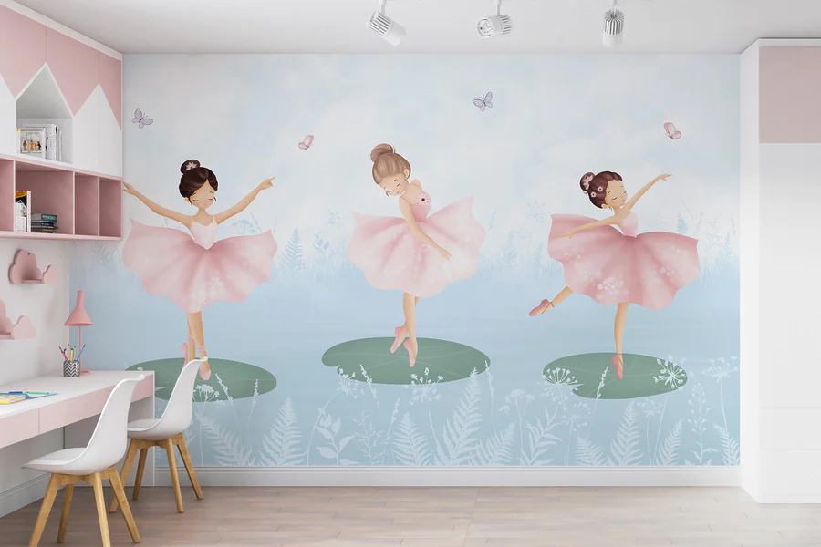 Ταπετσαρίες Ομάδα κοριτσιών με ροζ φουστίτσες που χορεύουν σε κρινάκια