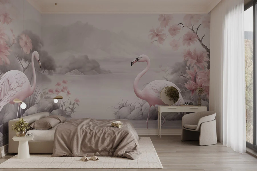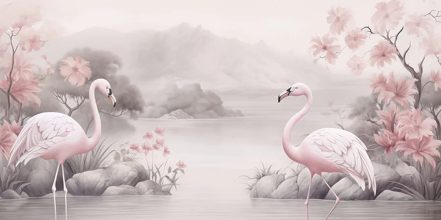 Ταπετσαρίες Φλαμίνγκο σε λίμνη