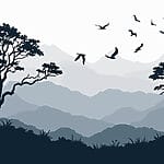 Ταπετσαρίες Πουλιά που πετούν πάνω από μια οροσειρά