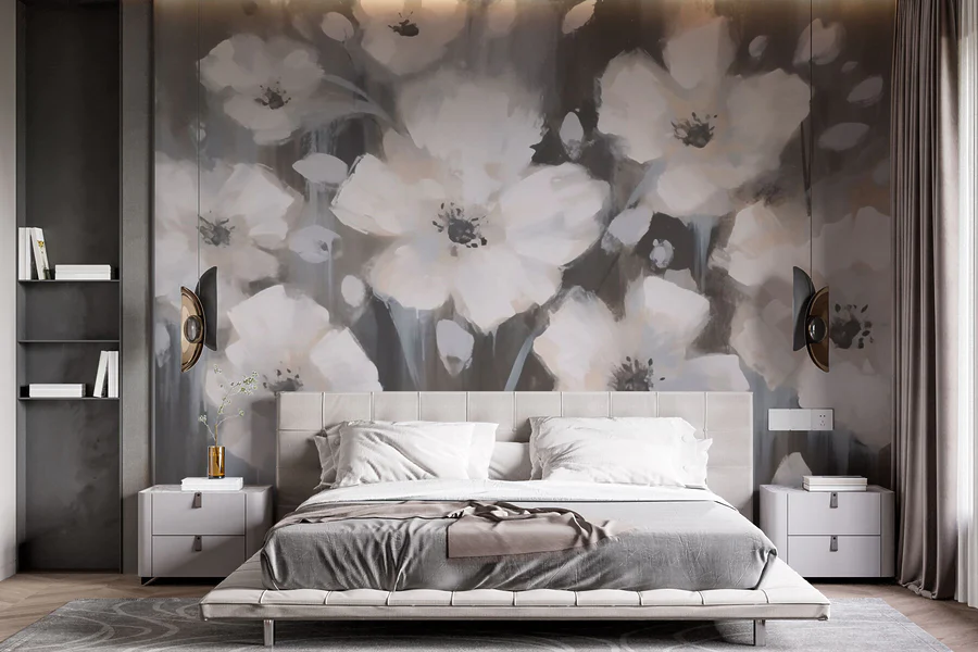 Ταπετσαρίες Ζωγραφική λευκών λουλουδιών