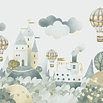 Ταπετσαρίες Ακουαρέλα ζωγραφικής ενός κάστρου και αερόστατα θερμού αέρα