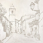 Ταπετσαρίες Σχέδιο ενός δρόμου με καμπαναριό