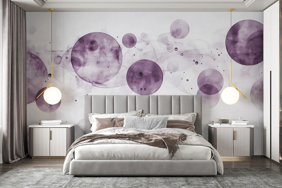 Ταπετσαρίες Μωβ κύκλοι και καπνός σε λευκό φόντο