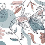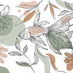 Ταπετσαρίες Ψάρια και φυτά σε λευκό φόντο