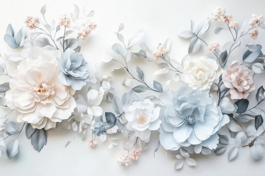 15.15 €8.33 €Ταπετσαρίες Λευκά άνθη και φύλλα σε λευκή επιφάνεια