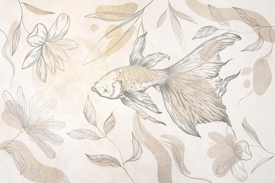 Ταπετσαρίες Κομψό ψάρι ανάμεσα σε φλοράλ σχέδια