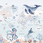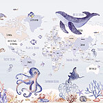 Ταπετσαρίες Χάρτης του κόσμου με θαλάσσια ζώα