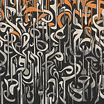 Ταπετσαρίες Ασπρόμαυρη τέχνη με πορτοκαλί και λευκές γραμμές
