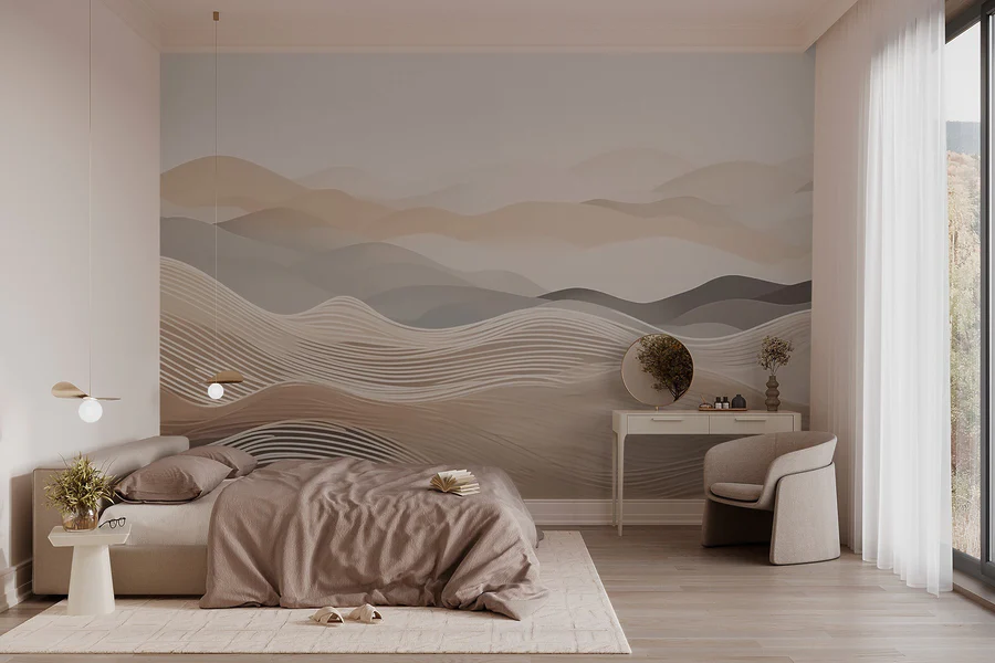 Ταπετσαρίες Τοπίο λόφων με λευκά και καφέ κύματα