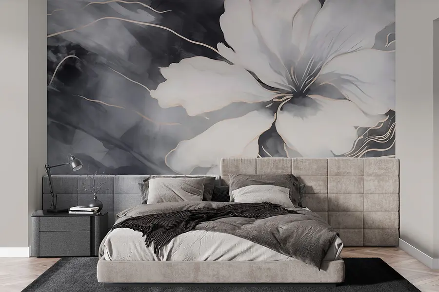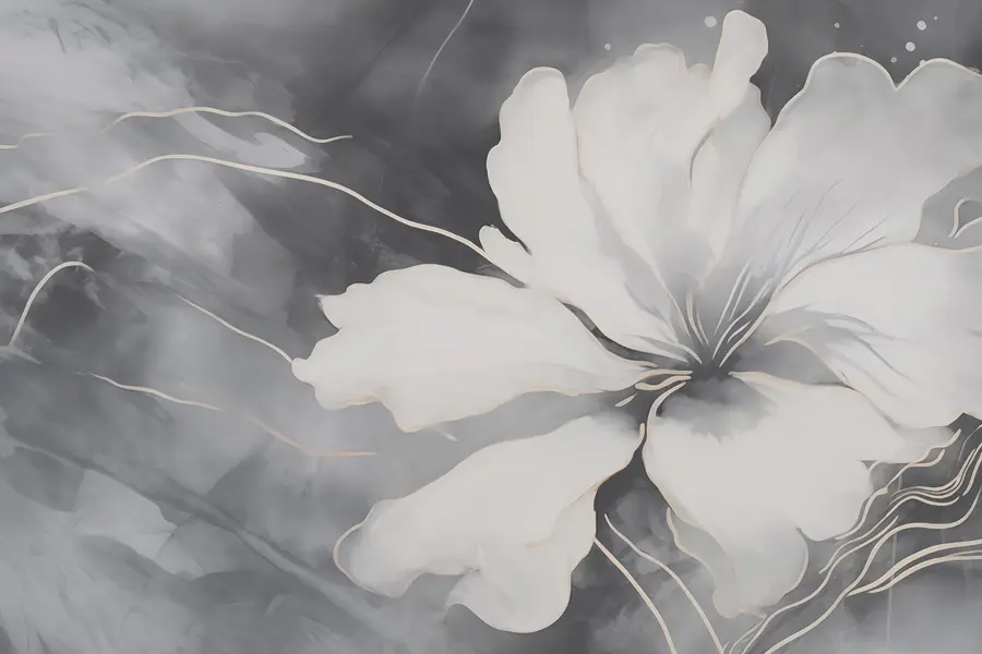 Ταπετσαρίες Λευκό λουλούδι σε ασπρόμαυρο φόντο