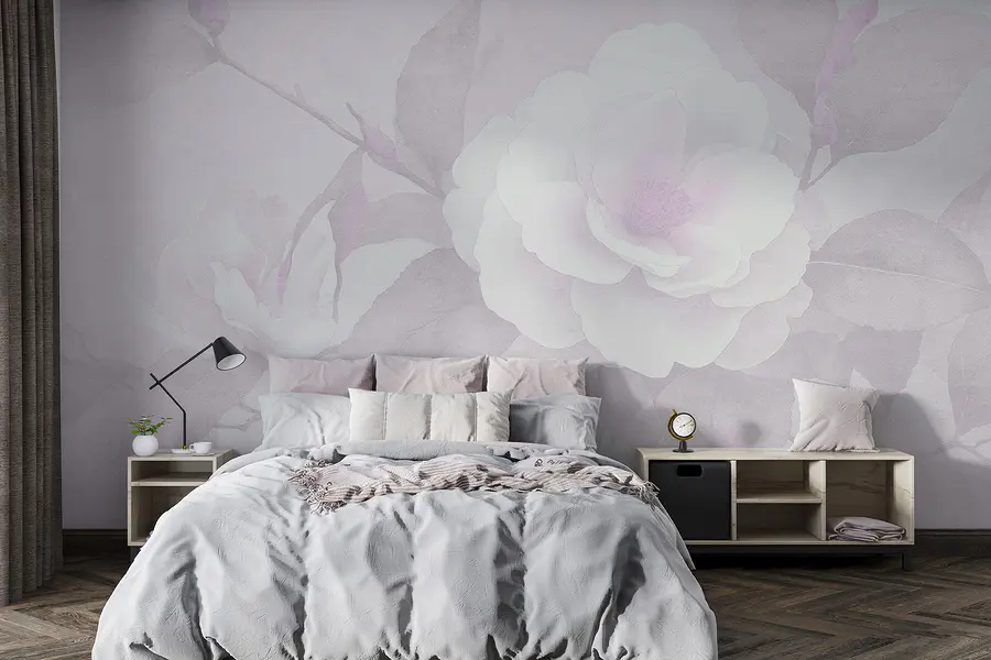 Ταπετσαρίες Λευκό λουλούδι με φύλλα