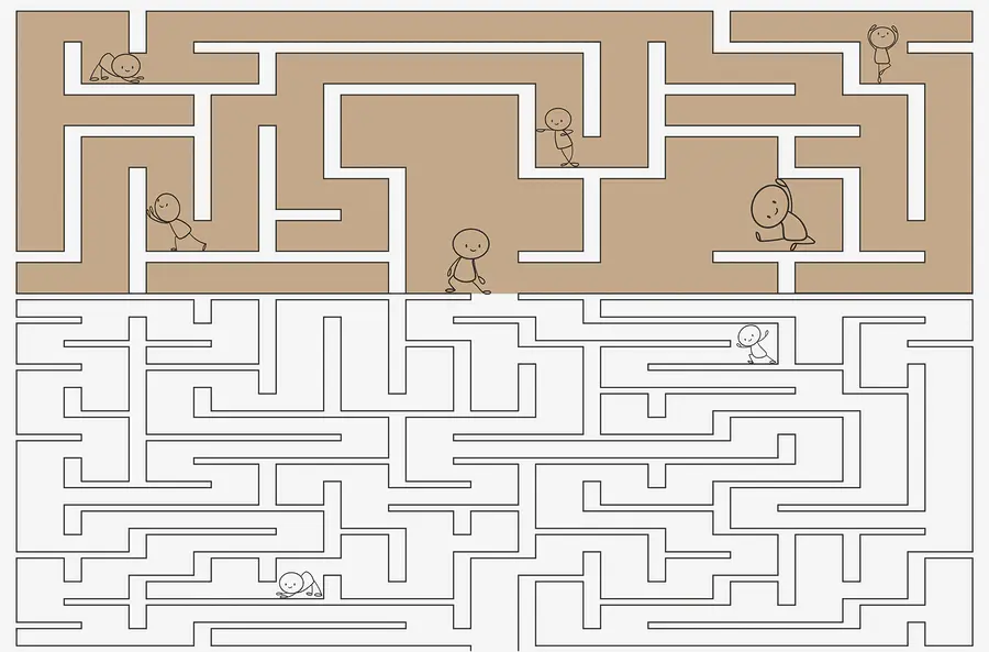 Ταπετσαρίες Παιχνίδι λαβύρινθος με ανθρώπους που περπατούν στον τοίχο
