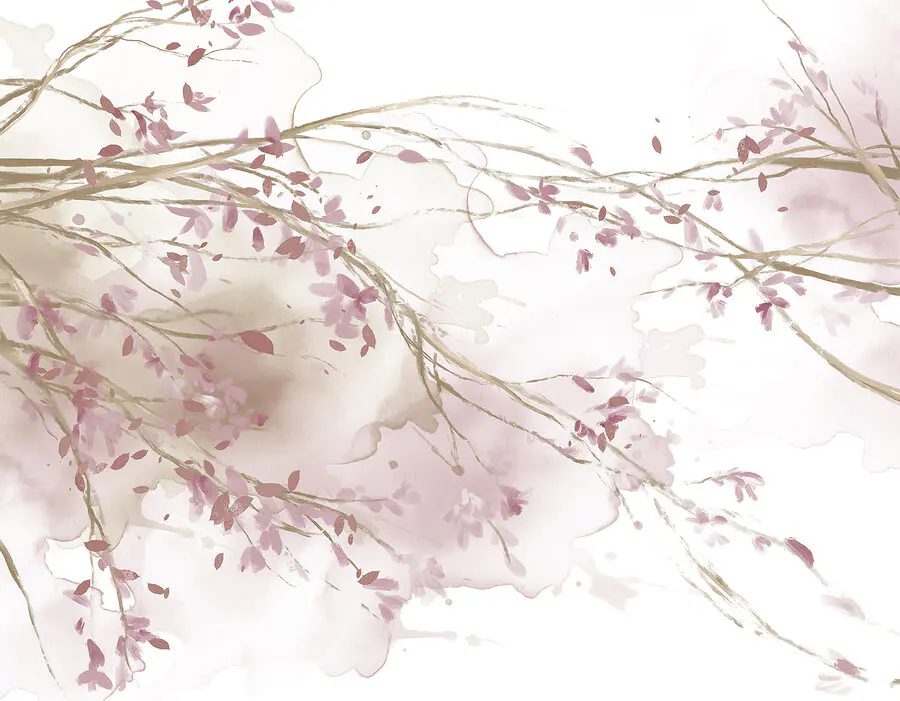 Ταπετσαρίες Υδατογραφία ενός κλαδιού δέντρου με ροζ λουλούδια
