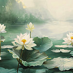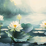 Ταπετσαρίες Ζωγραφική λευκών λουλουδιών και φύλλων στο νερό
