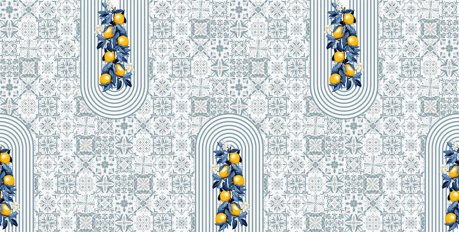Ταπετσαρίες Μοτίβο φρούτων σε λευκό και μπλε φόντο